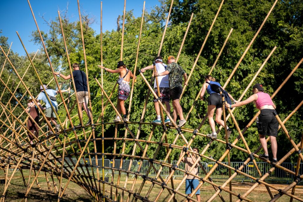 As mentioned above, on arrival at Sziget, we kinda just threw our tent down in the first available space we happened upon. Which turned out to be a stroke of good fortune because, on Friday, we realised we’d pitched our tent right next to Sziget’s workout zone. Volleyball. Tai chi. Basketball. Dumbbells, kettlebells, yoga mats – it was all there. And, perhaps even more surprising, it was all in use! Now, if we’re honest, we weren’t feeling like a workout in the midday sun was necessarily an exceptional idea. But we were there to report!